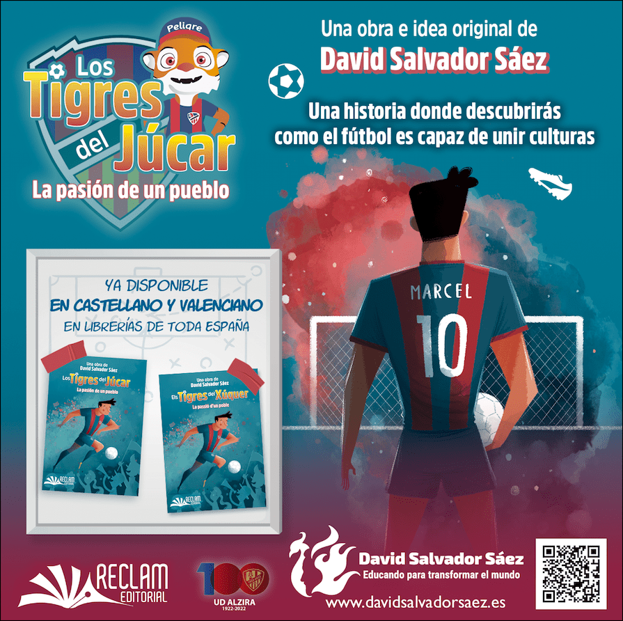 Conoce esta historia de superación, constancia y esfuerzo junto al trabajo en equipo y descubre como el fútbol es un deporte capaz de unir culturas y transmitir los valores deportivos a jóvenes y mayores. Los Tigres del Júcar, es el libro infantil oficial de la Unión Deportiva Alzira en el que además, el mundo del fútbol y la literatura se unen para rendir homenaje a los 100 años de historia del equipo alzireño con motivo de su centenario.