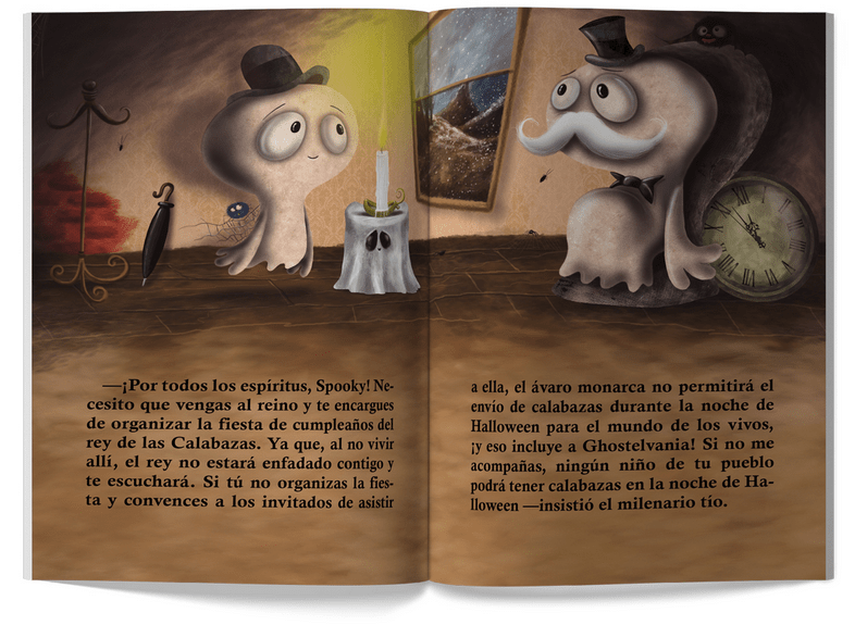 Probablemente son muchas las leyendas de fantasmas que habrás escuchado, pero no todas son iguales. Bienvenidos a Ghostelvania ¡tierra de fantasmas! Un pequeño pueblo del norte de Europa donde se cuenta la leyenda de un pequeño fantasma, llamado Spooky, que vive en el campanario de la vieja iglesia y que una vez salvó la noche más terrorífica del año: la noche de Halloween. Únete a Spooky, a su pequeña araña y a su tío Mortis en el viaje al Reino de las Sombras para solucionar un pequeño problema con el Rey que gobierna aquel lugar y que este año ha decidido dejar sin calabazas a todos los habitantes de Ghostelvania en el Reino de los Vivos.